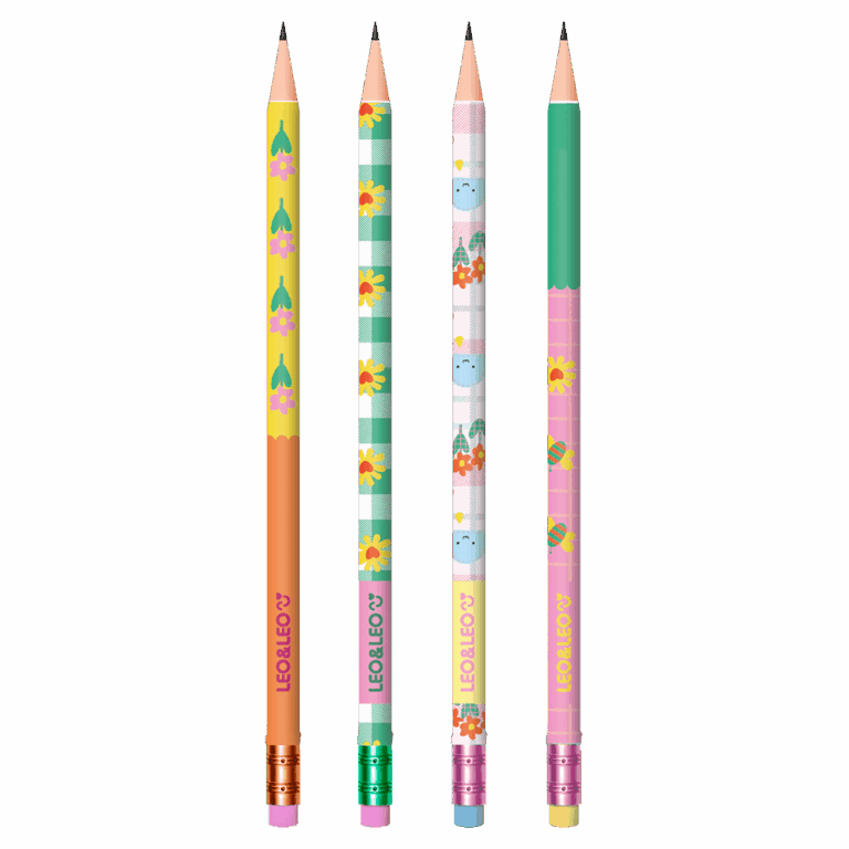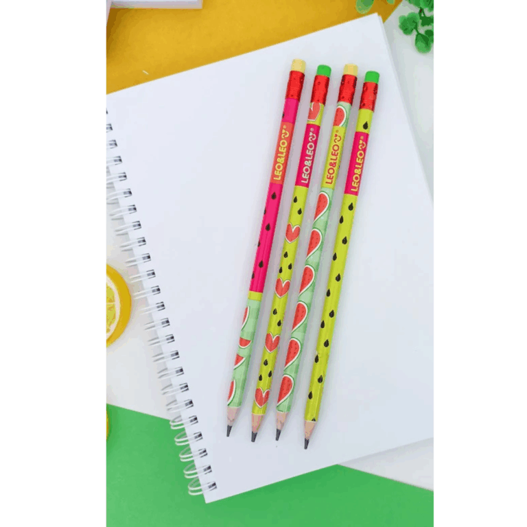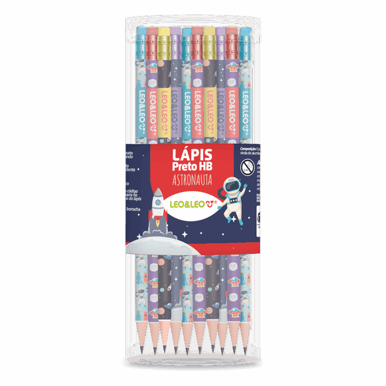 Kit Escolar 4 Peças Lápis Apontador e Borracha LEO&LEO