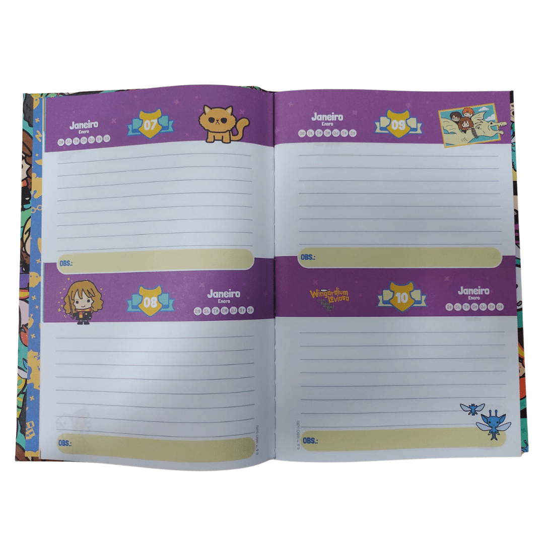 Traga o mundo bruxo para o seu dia a dia com a Agenda Permanente Harry Potter. Ideal para fãs de todas as idades, esta agenda combina um design encantador em estilo chibi com a funcionalidade necessária para planejar suas tarefas, estudos e poções! Por ser permanente, você tem a liberdade total de começar a usá-la em qualquer momento do ano.