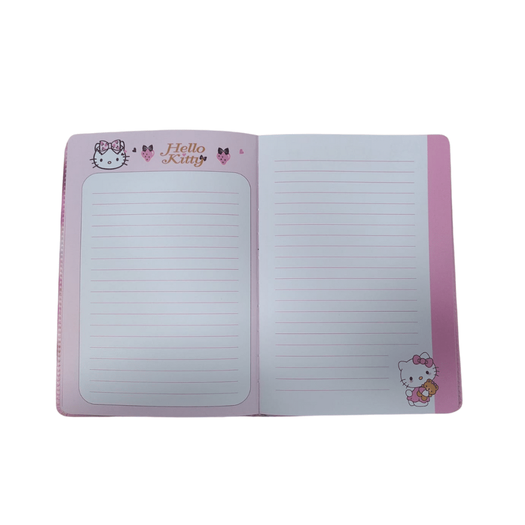 • Folhas Decoradas: O interior não é apenas para anotações; cada página conta com ilustrações e detalhes da Hello Kitty para inspirar sua criatividade.