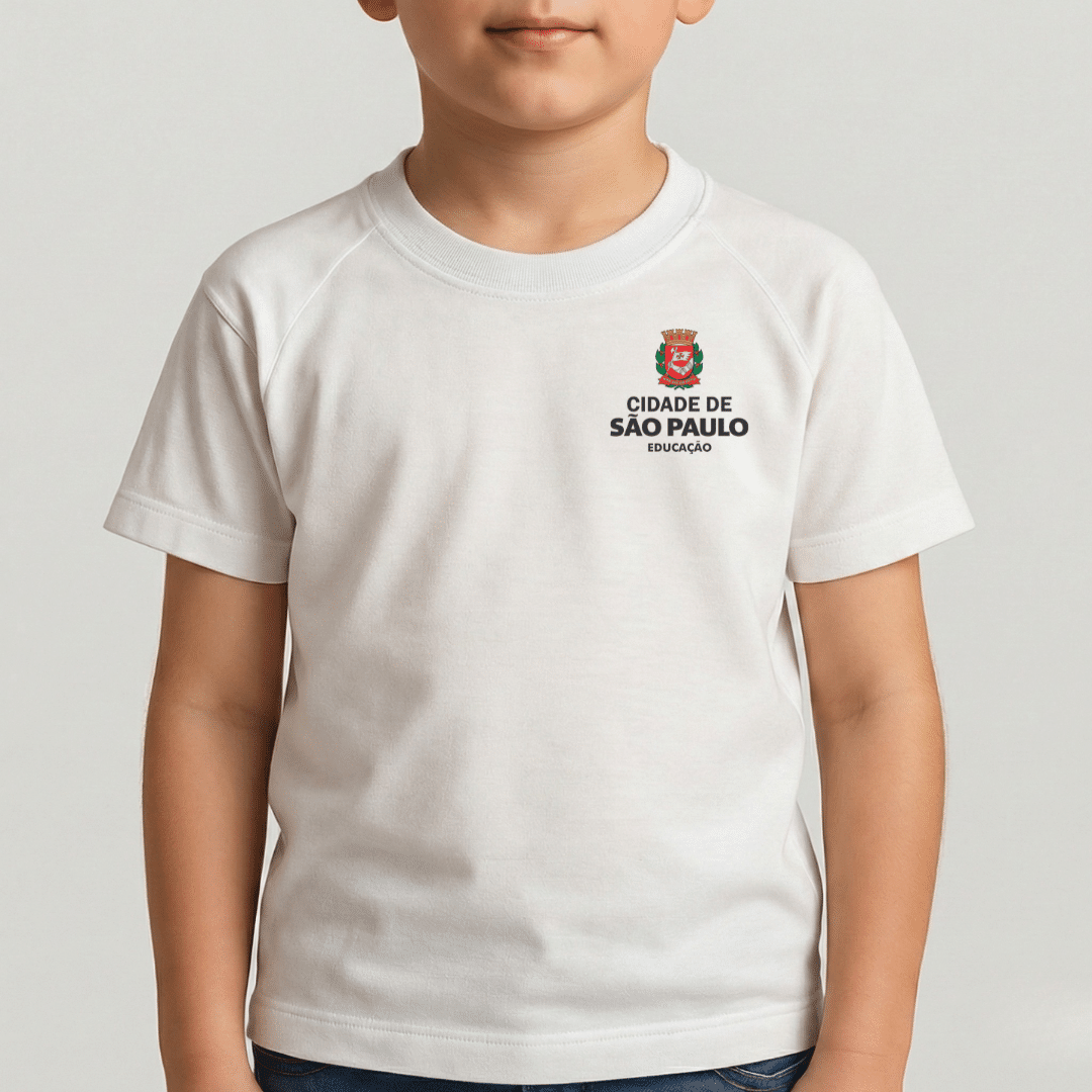 A Camiseta escolar da SMESP é confeccionada em meia malha 50% Algodão e 50% poliéster com muito mais conforto, durabilidade e modelagem regular fit para liberdade nos movimentos, possui gola careca e manga curta, com tecido sanfonado no decote.
