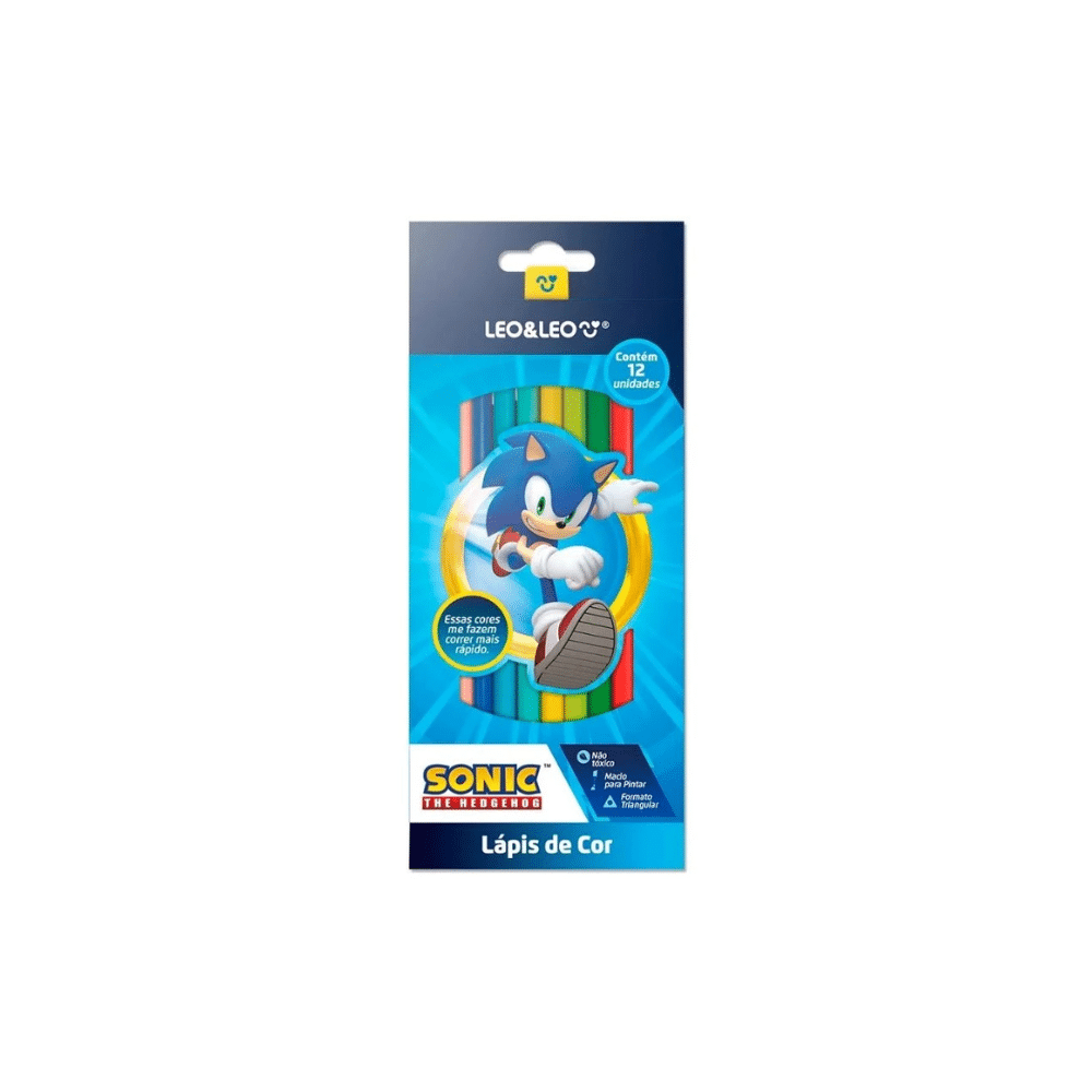 Lápis inspirado no veloz personagem e com formato diferenciado. Assim é o Lápis de Cor dos Personagens Sonic 12 Cores Triangular Leo&Leo.