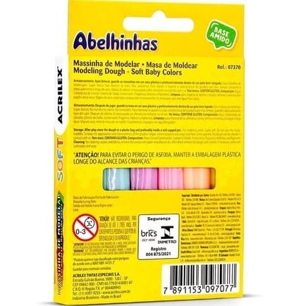 A massa de modelar Baby Soft Colors da marca Acrilex é a escolha perfeita para estimular a criatividade e a imaginacao das criancas a partir de 2 anos. Com seis cores vibrantes, essa massinha é ideal para pequenas maos que desejam explorar o mundo da modelagem de forma divertida e segura.