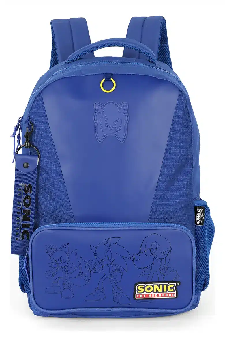 Mochila Sonic The Hedgehog Luxcel original e licenciada oficialmente pela SEGA: estilo, qualidade e praticidade em um único produto. Com visual marcante na cor azul e estampa frontal do rosto do Sonic, esta mochila une personalidade gamer e funcionalidade para acompanhar a rotina escolar, passeios e o dia a dia.