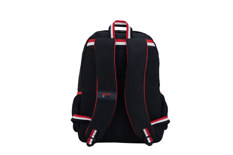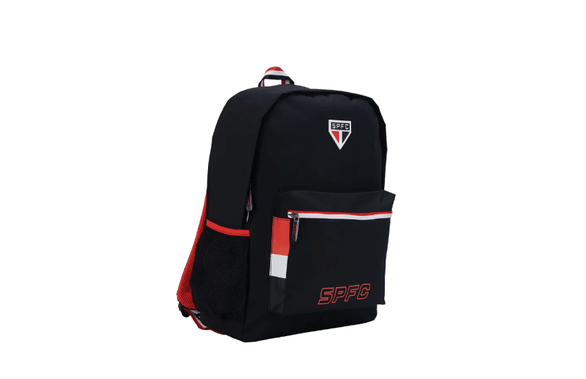 * Alças acolchoadas e reforçadas, com acabamento em dryless e detalhes em vermelho, branco e preto, garantindo conforto e estilo.