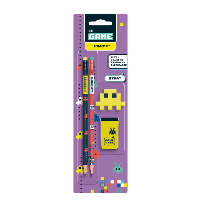 KIT 2 LÁPIS GRAFITE + BORRACHA + APONTADOR GAME – LEO&LEO