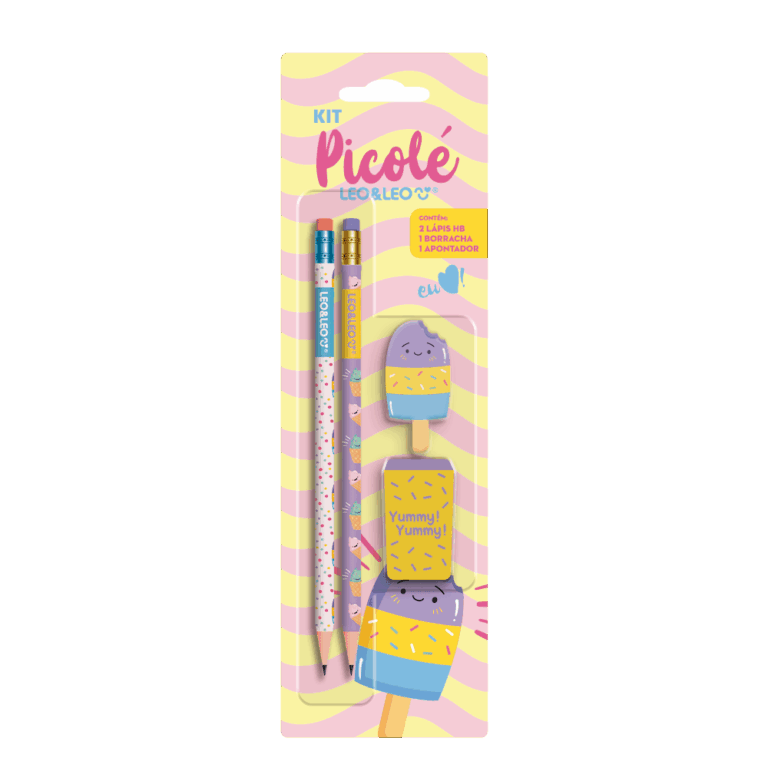KIT 2 LÁPIS GRAFITE + BORRACHA + APONTADOR PICOLE – LEO&LEO