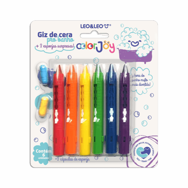 GIZ DE CERA RETRÁTIL PARA BANHO C/ 2 CAPSULAS DE ESPONJA SURPRESA COLOR JOY – C/ 6 CORES LEO&LEO