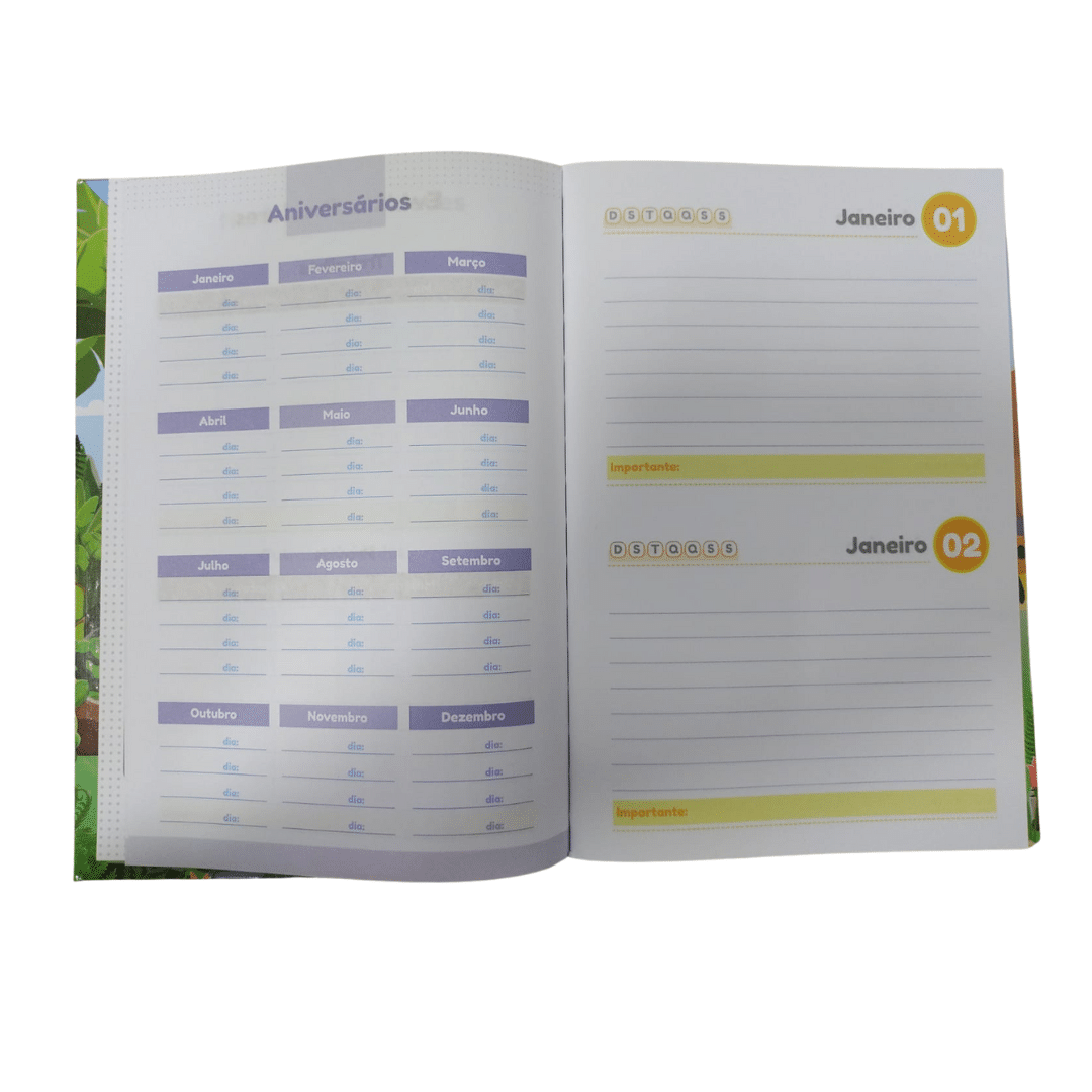 • Interior Vibrante: Miolo impresso em 4×4 cores, garantindo que cada página seja visualmente estimulante e organizada.