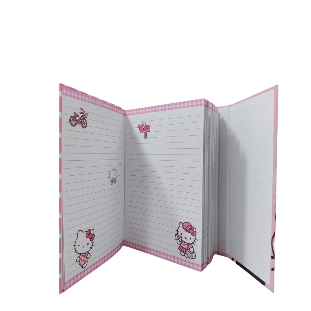 Interior Encantador: Possui 80 folhas totalmente decoradas com o tema Hello Kitty, tornando cada anotação uma experiência lúdica e especial.