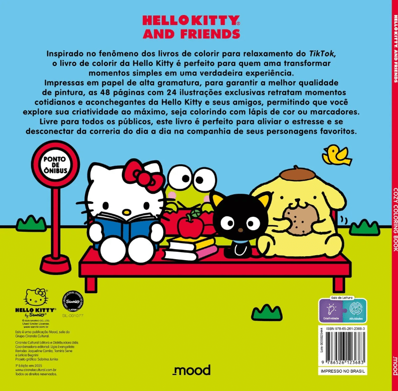 Com 48 páginas e 24 ilustrações exclusivas, você terá a companhia da Hello Kitty e seus amigos em cenários fofos e aconchegantes para soltar a imaginação. Produzido em papel de alta gramatura, garante qualidade para colorir com lápis de cor ou marcadores, sem marcar a página de trás.