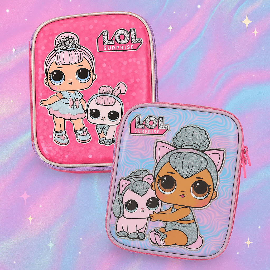 Organize o material escolar com muito charme e diversão! Os estojos LOL Surprise trazem brilho, cores vibrantes e personagens que as crianças amam.