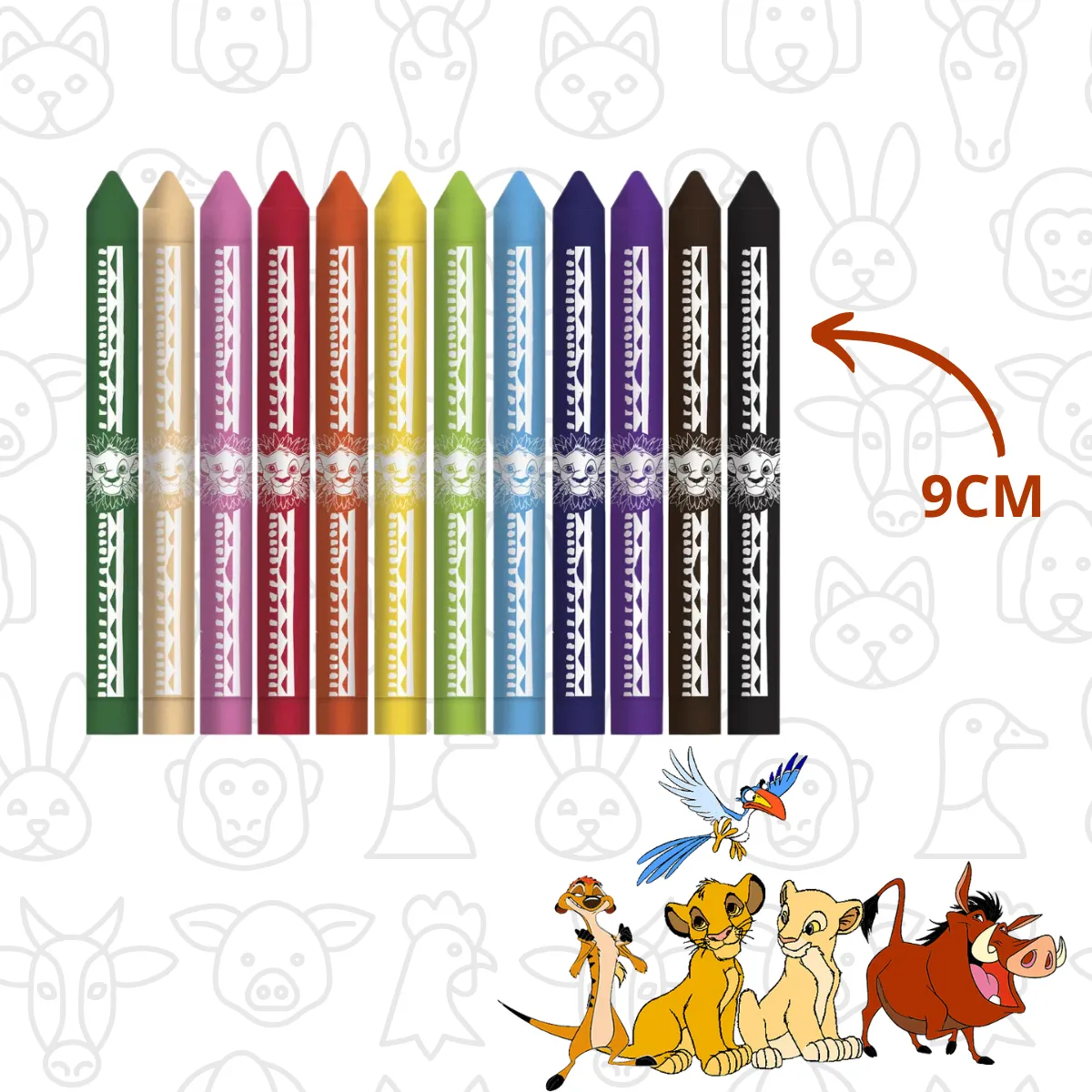 Desperte a criatividade das crianças com o Giz de Cera Rei Leão da Leo & Leo! Este conjunto encantador contém 12 cores vibrantes e é decorado com os personagens favoritos do filme Rei Leão. Ideal para desenhar, colorir e criar obras de arte, este giz de cera oferece uma experiência divertida e educativa.