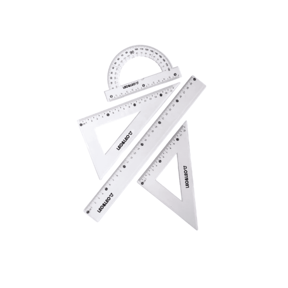 Kit Jogo Geométrico De Réguas Escolar Leo & Leo, contém 4 peças ideal para você usar na escola.