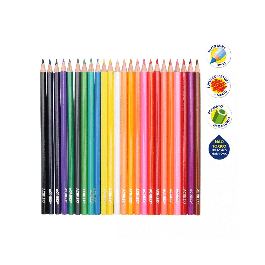 Com um design ergonômico, eles sao confortáveis de segurar, tornando suas sessões de desenho mais agradáveis. Seja para projetos escolares, ilustrações ou simplesmente para relaxar, o Lápis de Cor Acrilex é a escolha ideal para expressar sua criatividade.