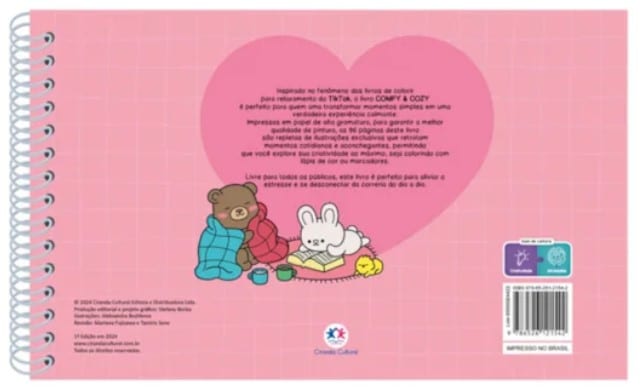 Inspirado no fenômeno dos livros de colorir para relaxamento do TikTok, o livro Comfy & Cozy é perfeito para quem ama transformar momentos simples em uma verdadeira experiência calmante. Impressas em papel de alta gramatura, para garantir a melhor qualidade de pintura, as 96 páginas com 48 ilustrações exclusivas retratam momentos cotidianos e aconchegantes, permitindo que você explore sua criatividade ao máximo, seja colorindo com lápis de cor ou marcadores. Livre para todos os públicos, este livro é perfeito para aliviar o estresse e se desconectar da correria do dia a dia.