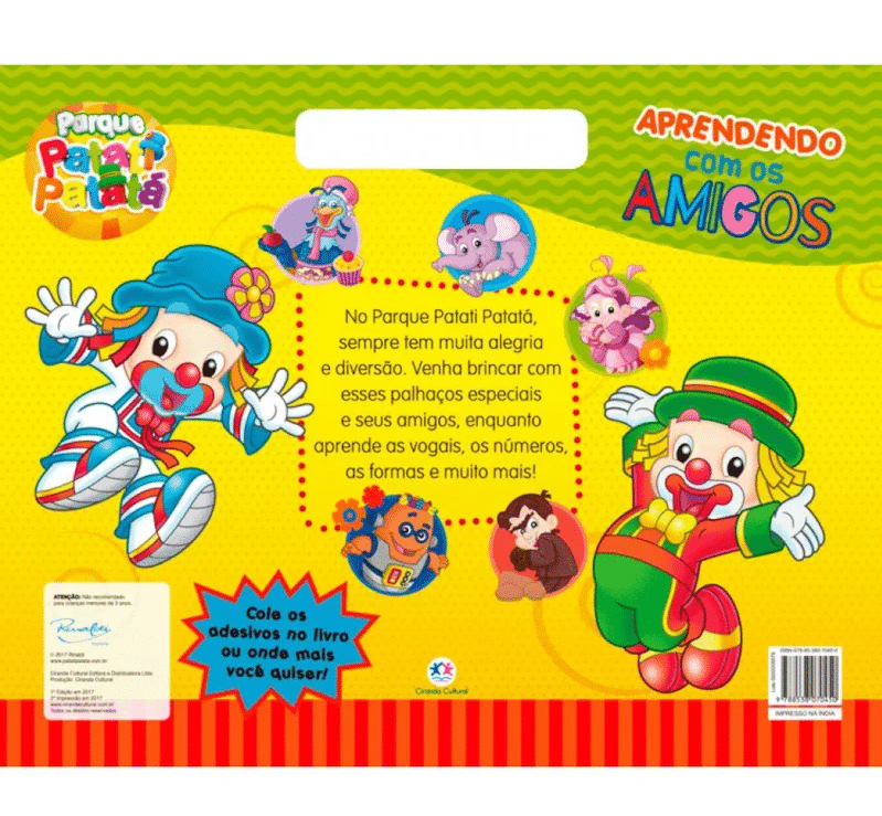 Com 100 adesivos incríveis e coloridos, os pequenos vão aprender vogais, números, formas e muito mais enquanto se divertem com os palhacinhos e seus amigos em um universo cheio de cores e brincadeiras.