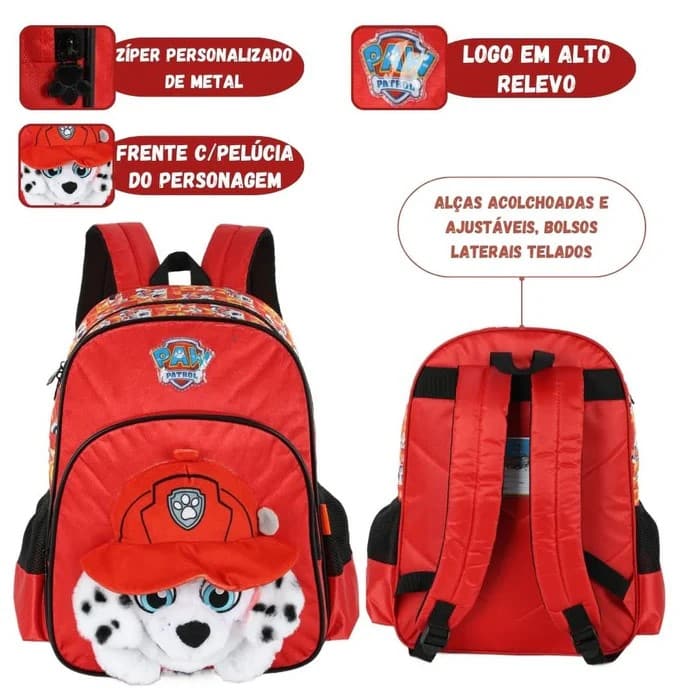 - Frente Peluciada 3D: O grande diferencial é a frente em pelúcia com o personagem 3D, que traz a alegria do seu Patrulheiro favorito para a mochila.