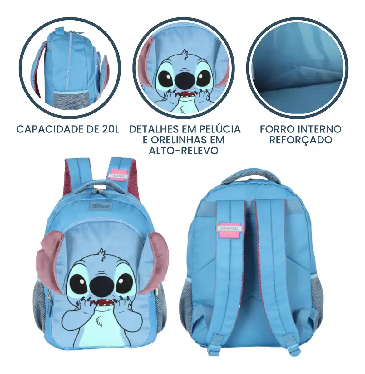 A Mochila Infantil Stitch 3D foi desenvolvida para quem busca um produto diferenciado, resistente e com visual marcante. Com orelhas em efeito 3D, ela entrega um estilo único e conquista imediatamente as crianças que adoram o personagem.