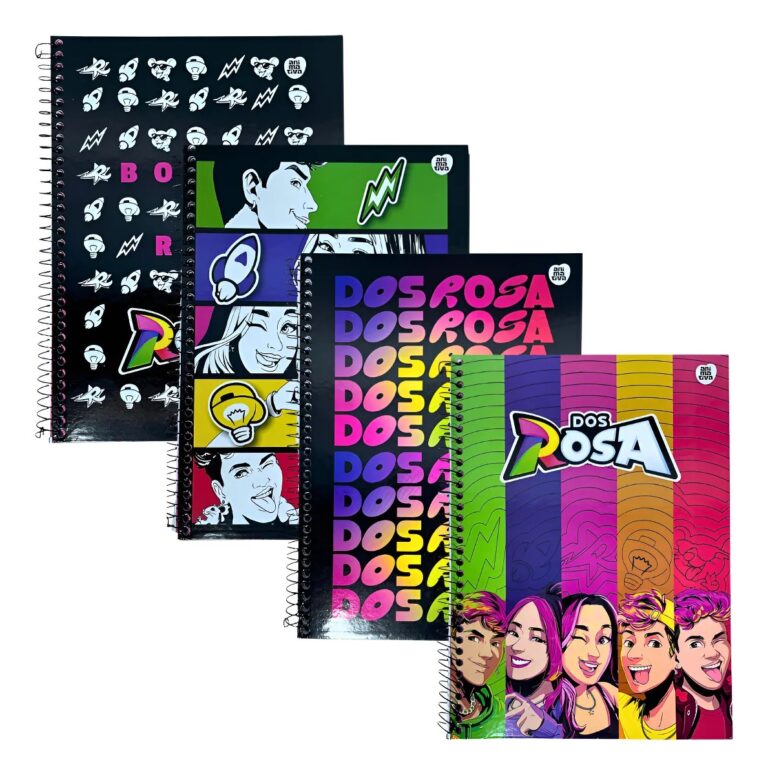 CADERNO UNIVERSITÁRIO “DOS ROSA” – 1 MATÉRIA | CAPA DURA | COM ADESIVOS – ANIMATIVA