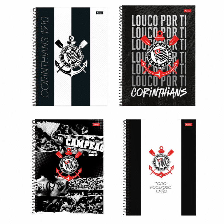 CADERNO UNIVERSITÁRIO CORINTHIANS COM ADESIVO – 10 MATÉRIAS / 160 FOLHAS – FORONI