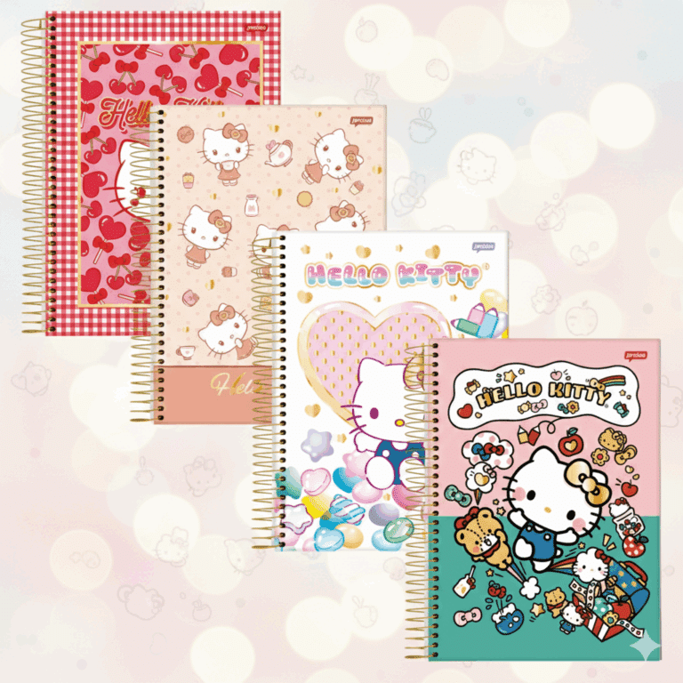 CADERNO UNIVERSITÁRIO HELLO KITTY – 10 MATÉRIAS | COM ADESIVOS – JANDAIA