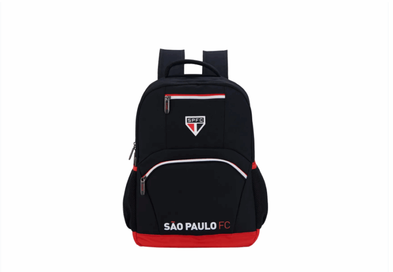 MOCHILA ESPORTIVA ESCOLAR BRASÃO SANTOS FC | PRETA ESTAMPADA | ALÇAS ACOLCHOADAS | ESPAÇOSA | BOLSOS LATERAIS – XERYUS